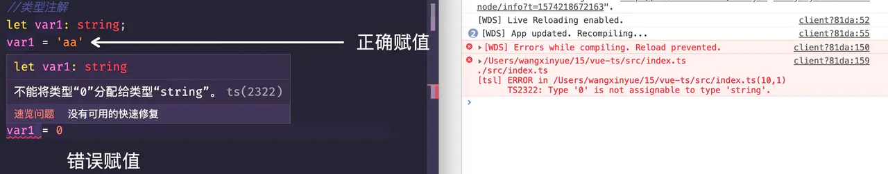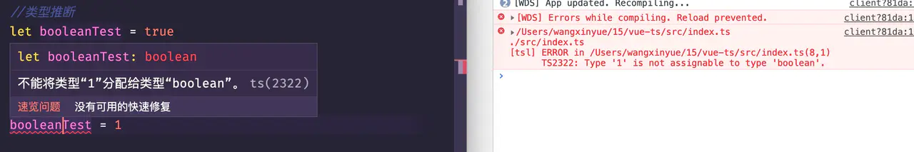 如果有初始值则根据原始类型推断类型原始类型:string、boolean、number、symbol、undefined、null