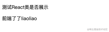 页面测试 1 2 3 4 5 6 7 8 9 10 11 12 13 14 15 class ReactComponent extends React .Component { render() { return ( <div> <p>测试React类是否展示</p> <p>{this .props.name}</p> </div> ) } } ReactDOM.render( <ReactComponent name='前端了了liaoliao' />, document .getElementById('root' ) );